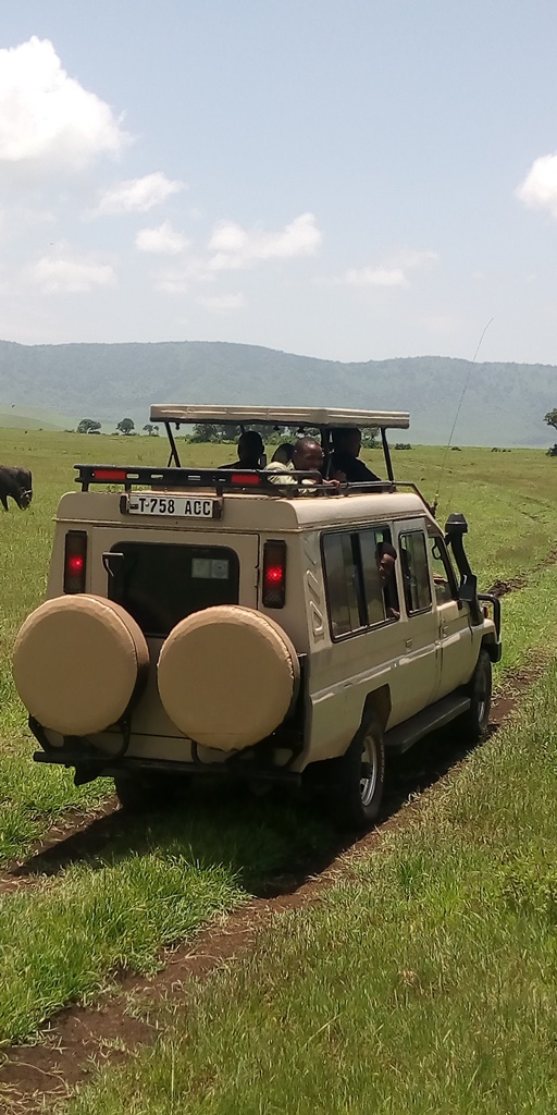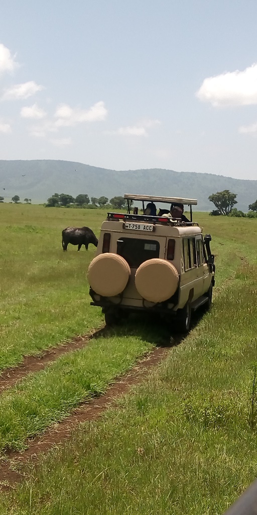 "Our client enjoying an unforgettable wildlife tour in the Ngorongoro Conservation Area, home to the stunning Ngorongoro Crater."