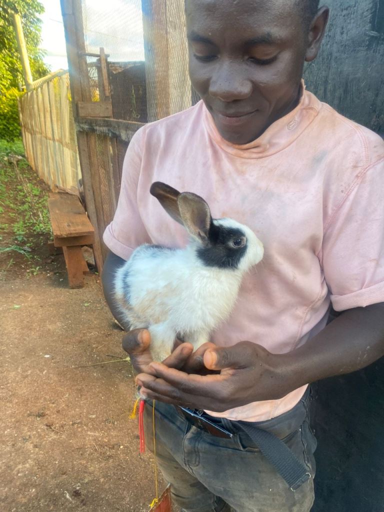 "Vincent proudly shows off one of the animals he cares for. He is dedicated to raising them with care and using organic methods. The farm is home to rabbits, guinea pigs, turkeys, ducks, chickens, goats, sheep and more. Take a tour around the farm and meet them all — Vincent will be happy to welcome you!"
